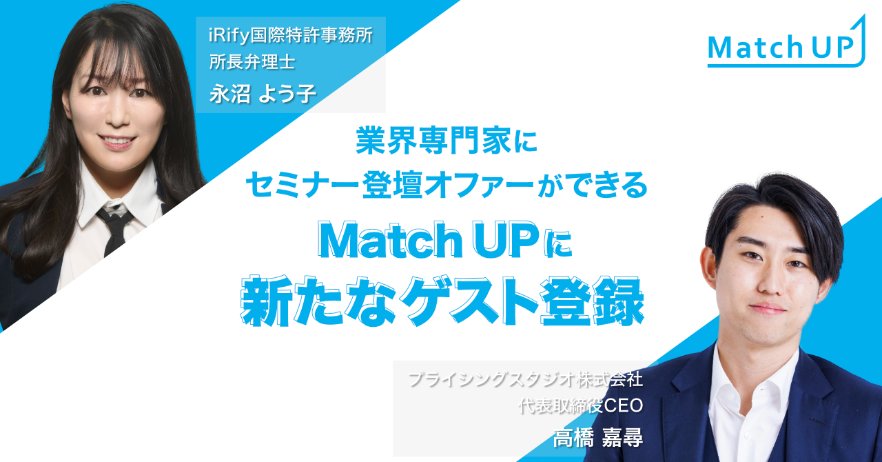 当社は、国内最大級のオンライン展示会「ITトレンド」や、ビジネス動画プラットフォーム「チラヨミ」を通して、多くの企業様、業界専門家の方とのお取引があり、自社のマーケティングノウハウを活かし、このような課題を解消するため、業界専門家にセミナー登壇オファーができるマッチングプラットフォーム「Match UP」の提供を開始いたしました。