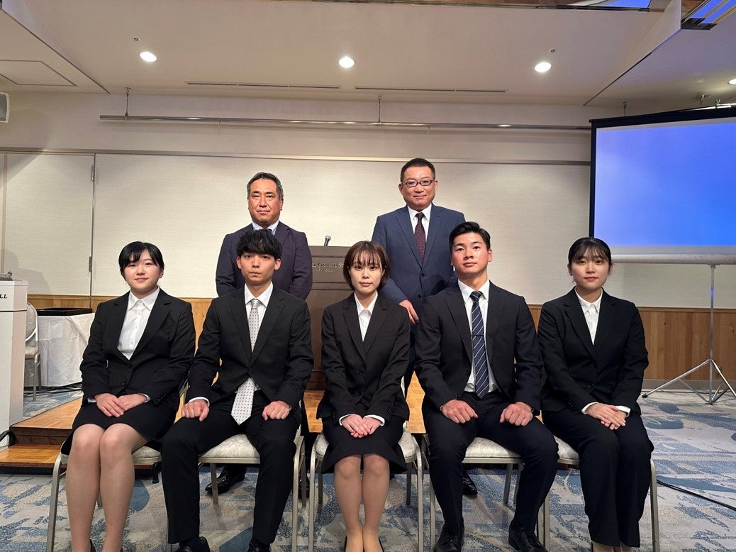 式典では、当社代表取締役社長の髙田幹也、常務取締役の高山典久から歓迎の言葉が贈られ、新入社員からも「持前の明るさとコミュニケーション力を活かして働いていきたいと思います。」「早く一人前になれるように頑張っていきたいと思います。」などと、初々しいコメントで挨拶が行われました。