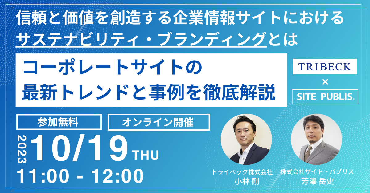 株式会社サイト・パブリス(本社:東京都千代田区 代表取締役社長:二通 宏久)はトライベック株式会社(本社:東京都港区 代表取締役社長:後藤 洋)と共催で10月19日(木)ウェビナーを開催します。