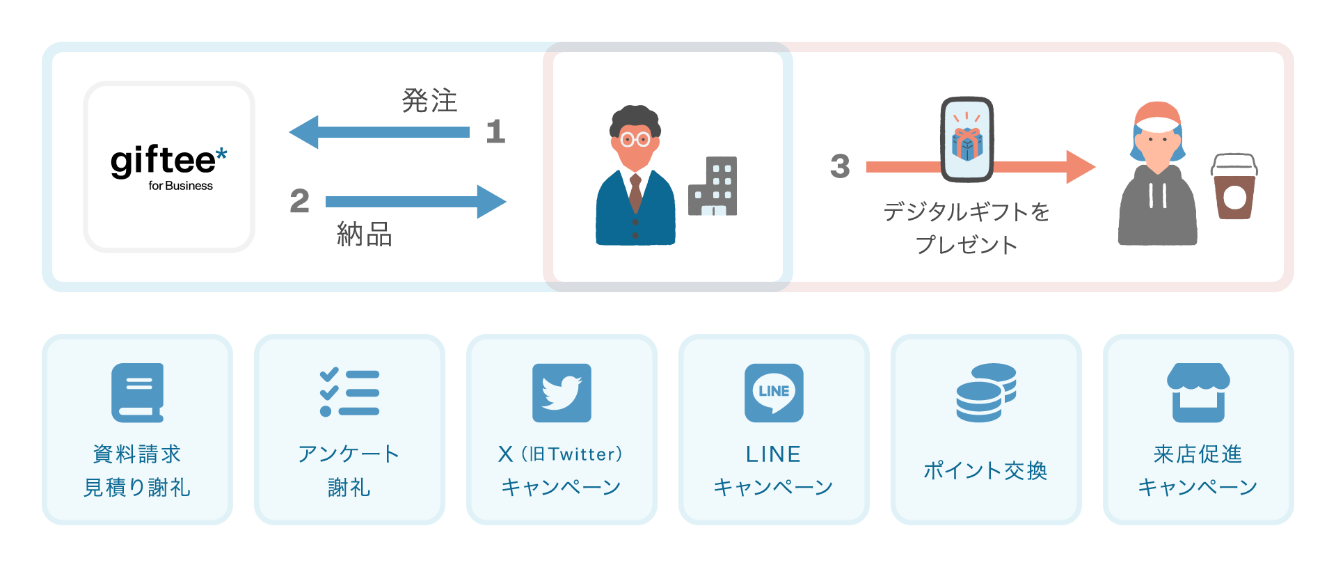 (※2) giftee for Businessとは、デジタルギフトを活用した法人向けサービスです。キャンペーンの景品やお客様への謝礼にデジタルギフトをご利用いただけます