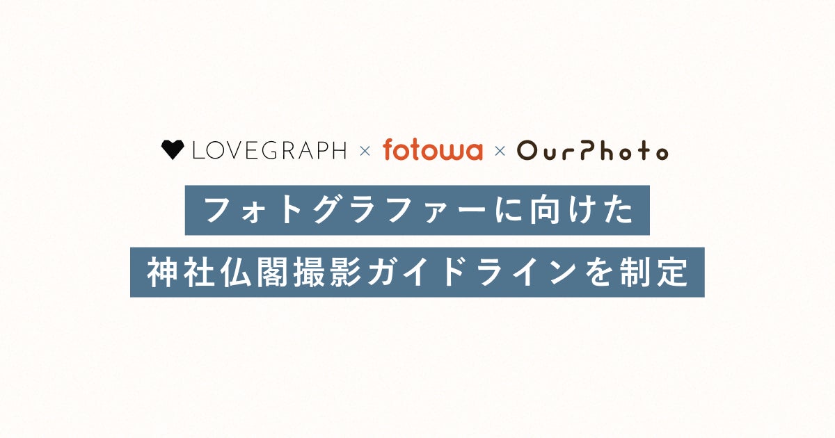 労働力不足問題解決のリーディングカンパニーとして、複数のSaaSを展開する株式会社うるる(東京都中央区 代表取締役社長:星 知也)の100%子会社、OurPhoto株式会社(東京都中央区 代表取締役:田中 偉嗣、以下「OurPhoto」)が展開する出張撮影サービス「OurPhoto」は、株式会社ラブグラフ(東京都渋谷区 代表取締役:駒下 純兵、以下「ラブグラフ」)が展開する「Lovegraph 」、ピクスタ株式会社(東京都渋谷区 代表取締役:古俣 大介、以下「ピクスタ」)が展開する「fotowa」と協力し、「神社仏閣撮影ガイドライン」を制定したことをお知らせいたします。