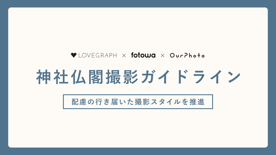 このような背景から、この度「fotowa」「OurPhoto」「Lovegraph」は、出張撮影業界の代表として共同で「神社仏閣撮影ガイドライン」を制定いたしました。