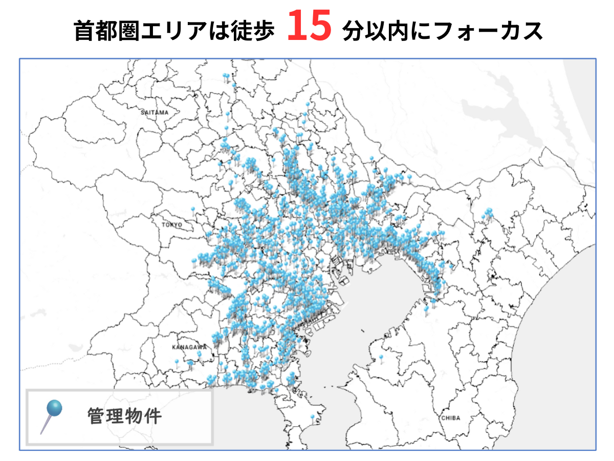 東京を中心に人口が集中するエリアで物件建築をしているため入居者分母を十分に確保できます。