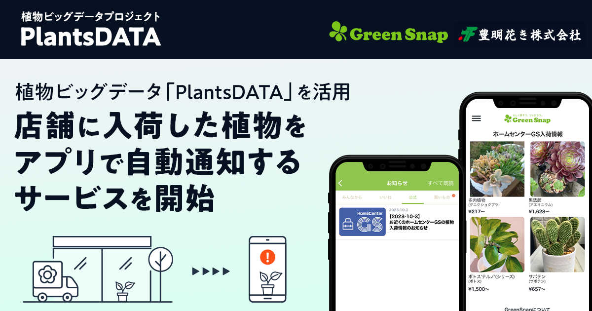 そこで、園芸植物(鉢物)の取扱高が日本最大の豊明花きの出荷データと、アプリダウンロード数300万件のGreenSnapのユーザーデータを連携した植物のビッグデータプロジェクト「PlantsDATA」の活用によりこれらを実現します。