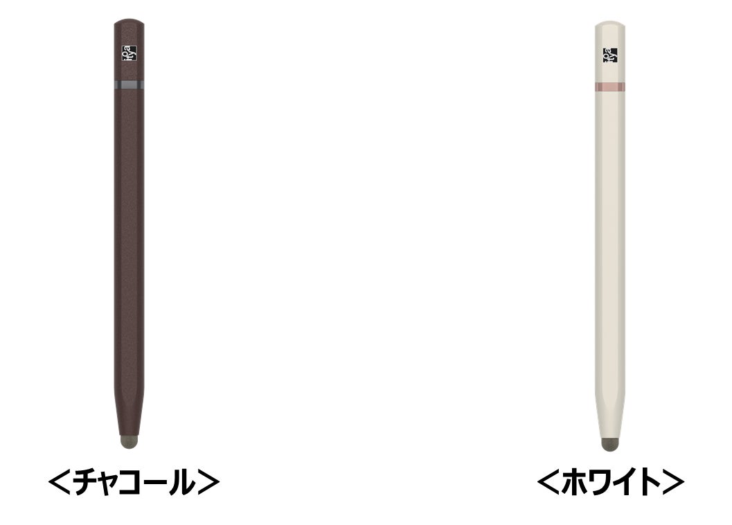 「タッチペン」は、タッチやスワイプなど操作のしやすさを重視し、重心の位置を工夫するなど持ちやすさを追求しました。机の上に置いても転がらず、ペン先に向けて繋ぎ目がないデザインで、鉛筆のように慣れ親しんだ持ち心地が特長です。また、「補助機器を利用していると思われるのが恥ずかしい」というお客さまのご意見を反映し、本体をマットな質感で仕上げ、アクセントとして金属調のラインを入れることで、モダンで落ち着いた印象のデザインとしました。カラーは、「チャコール」「ホワイト」の2色を発売いたします。