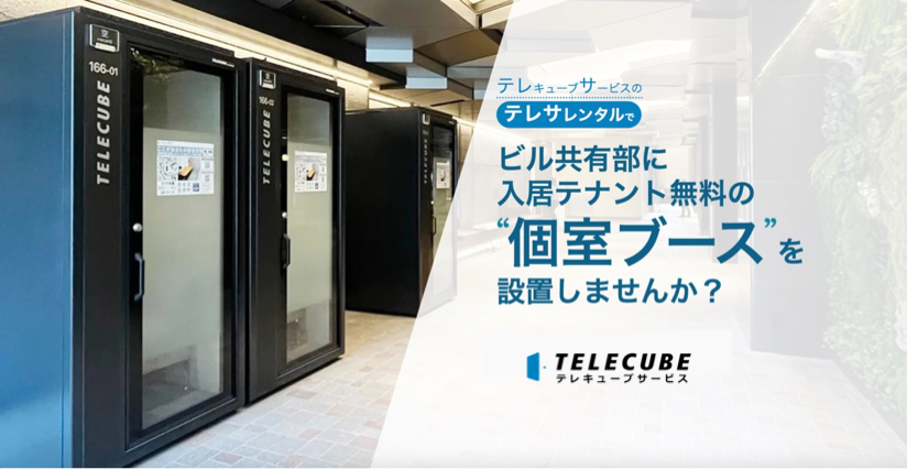 テレキューブサービス | テレサレンタルのご紹介 テレサレンタルで、ビル共有部に入居テナント無料の個室ブースを設置しませんか? テレサレンタルの詳細については、上記URLをご確認ください。 |