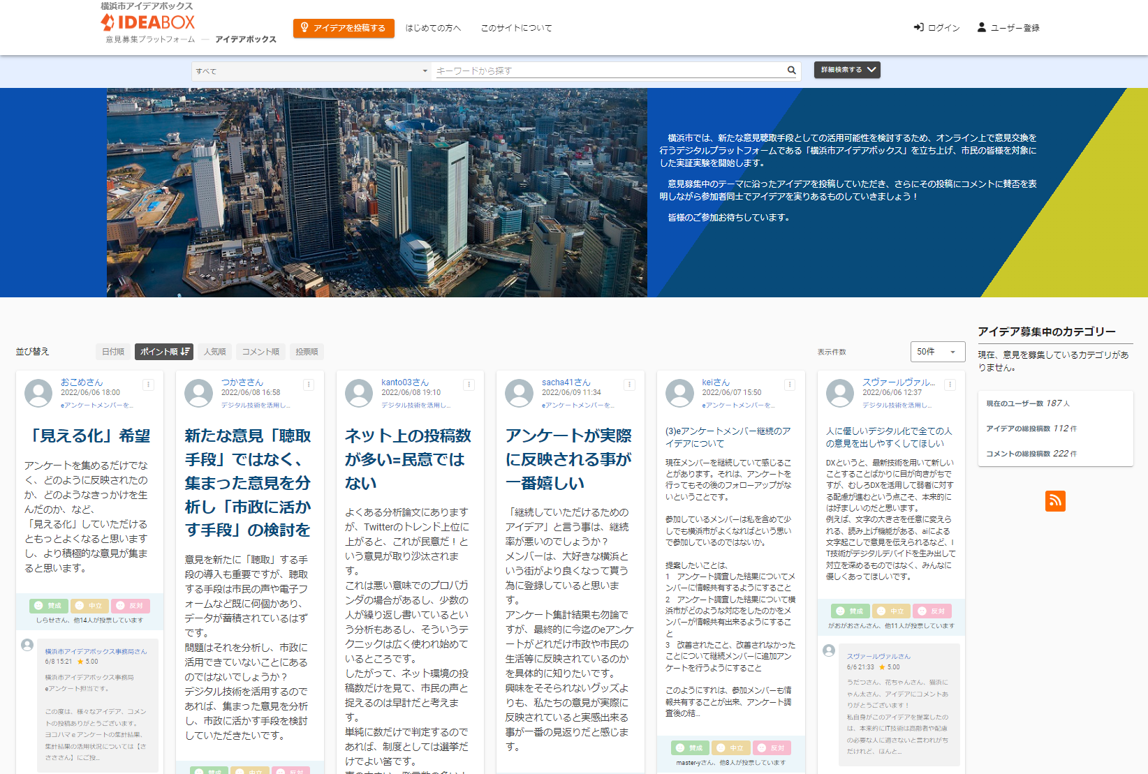 「横浜市アイデアボックス」URL : https://yokohamacity.ideabox.cloud/