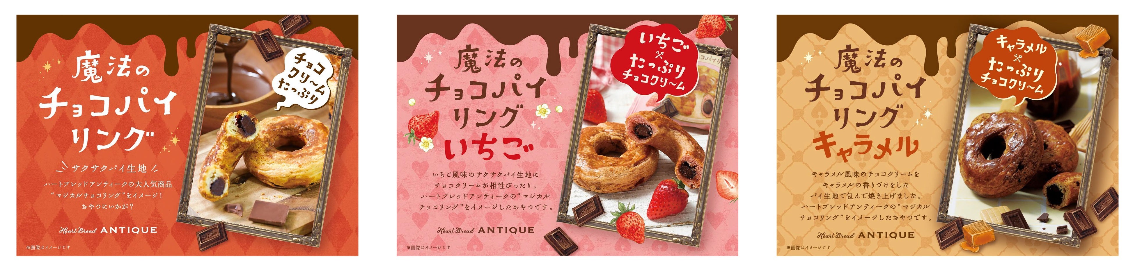 本フェアでは、「Heart Bread ANTIQUE」の中でも大人気の「魔法のチョコパイリング」や「ドゥーブルバターシュガーラスク」など合計4種をピックアップ。人気ベーカリーのこだわりがつまった上質なスイーツたちの“世にもおいしい”テイストに、思わず舌鼓を打ってしまうこと間違いなしのラインナップとなっております。