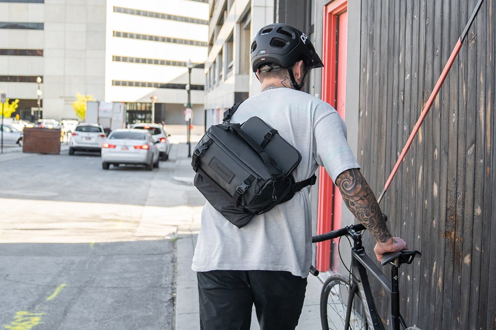 ロームスリング(9L、6L)には、ワンダードのラップトップケースをセッティングし、持ち運ぶことができます。