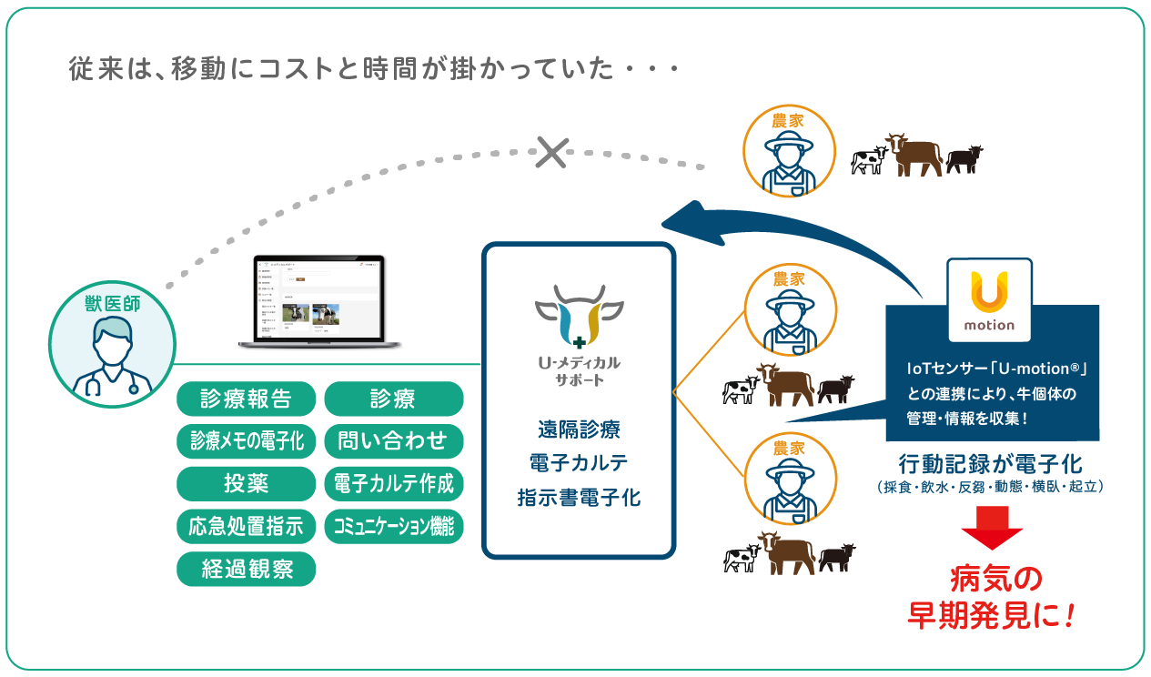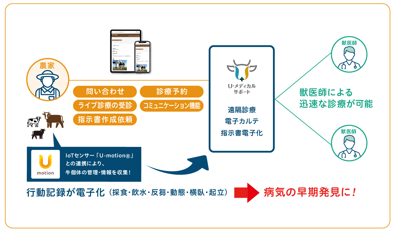 遠隔診療や電子カルテ機能を中心とした、牛の総合診療サポートツールです。