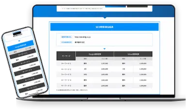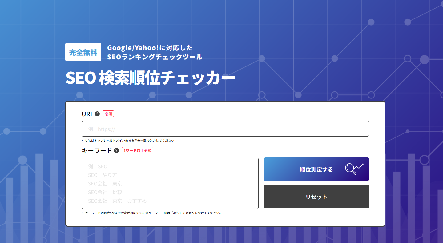 ホームページの検索順位を手軽に把握することができる無料のSEO順位チェックツールです。