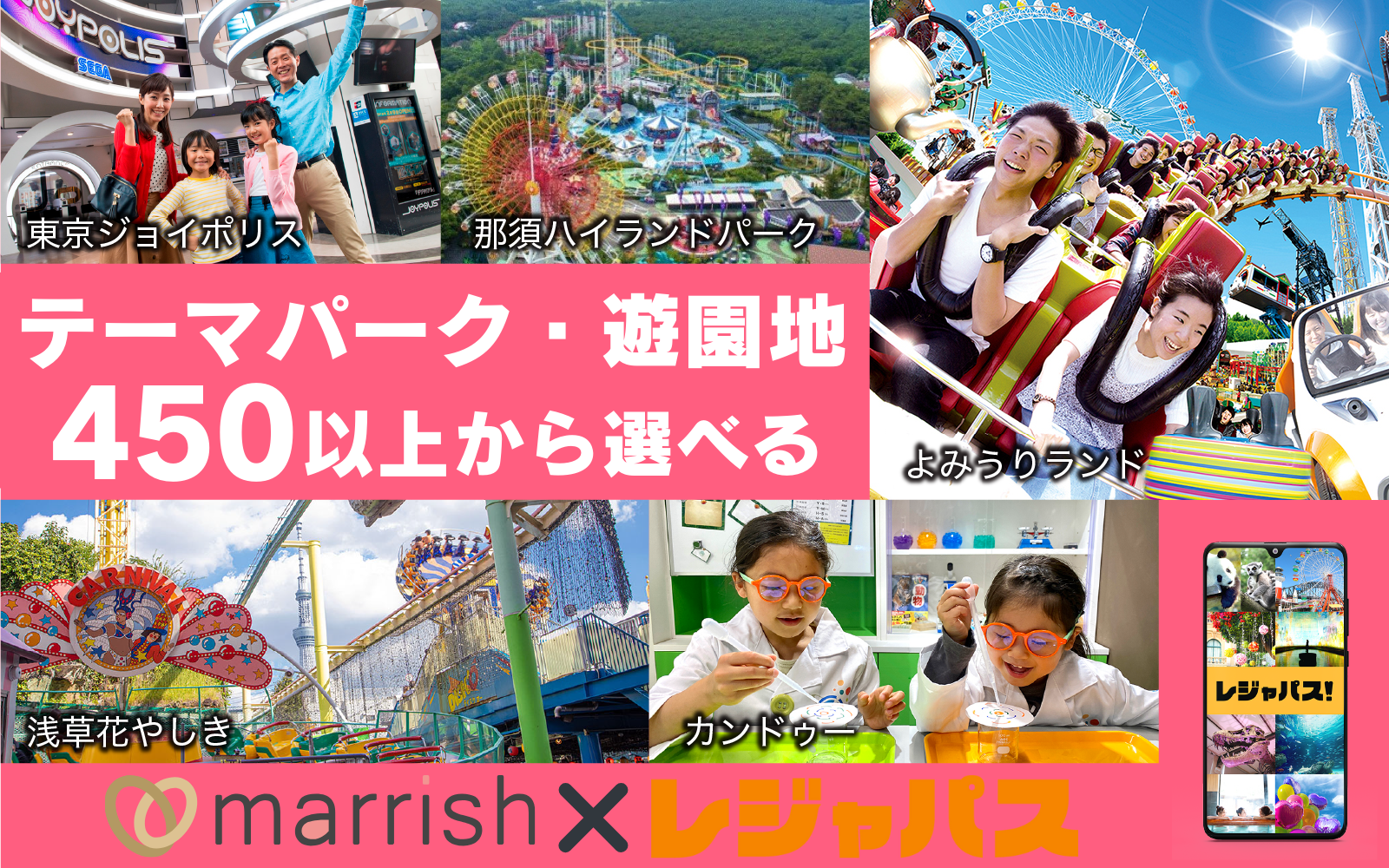 株式会社マリッシュでは123万世帯と言われている女性ひとり親(シングルマザー)への支援の一環として、株式会社ORIGRESS PARKS(所在地:東京都品川区、代表取締役社長:吉武 優)が提供しているレジャー・エンタメの定額制サービス「レジャパス」と連携し、コロナ禍であまりお出かけが出来なかったマリッシュで婚活中のシングルマザー世帯に対し、お子さんとお出かけ出来るクーポン(レジャパス)をプレゼントする企画を開始しました。