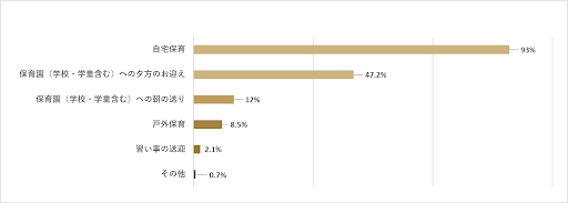 ■ベビーシッター利用割引券について 割引券は「全く足りない」が76.1%、「少し足りない」が13.4%となり、約9割の保護者が、足りないという回答となった。一方で、「割引券は十分ではないがある」5.6%、「割引券は十分にある」との回答が1.4%となった。その他「会社の未使用分次第(毎回6枚を上限に申請し、無くなり次第都度申請)」という声もあがった。 ■ベビーシッター利用割引券を利用して、どんなことを依頼しているか 「自宅保育」が93%、次いで、「保育園(学校・学童含む)への夕方のお迎え」が47.2%、「保育園(学校・学童含む)への朝の送り」が12%となった。