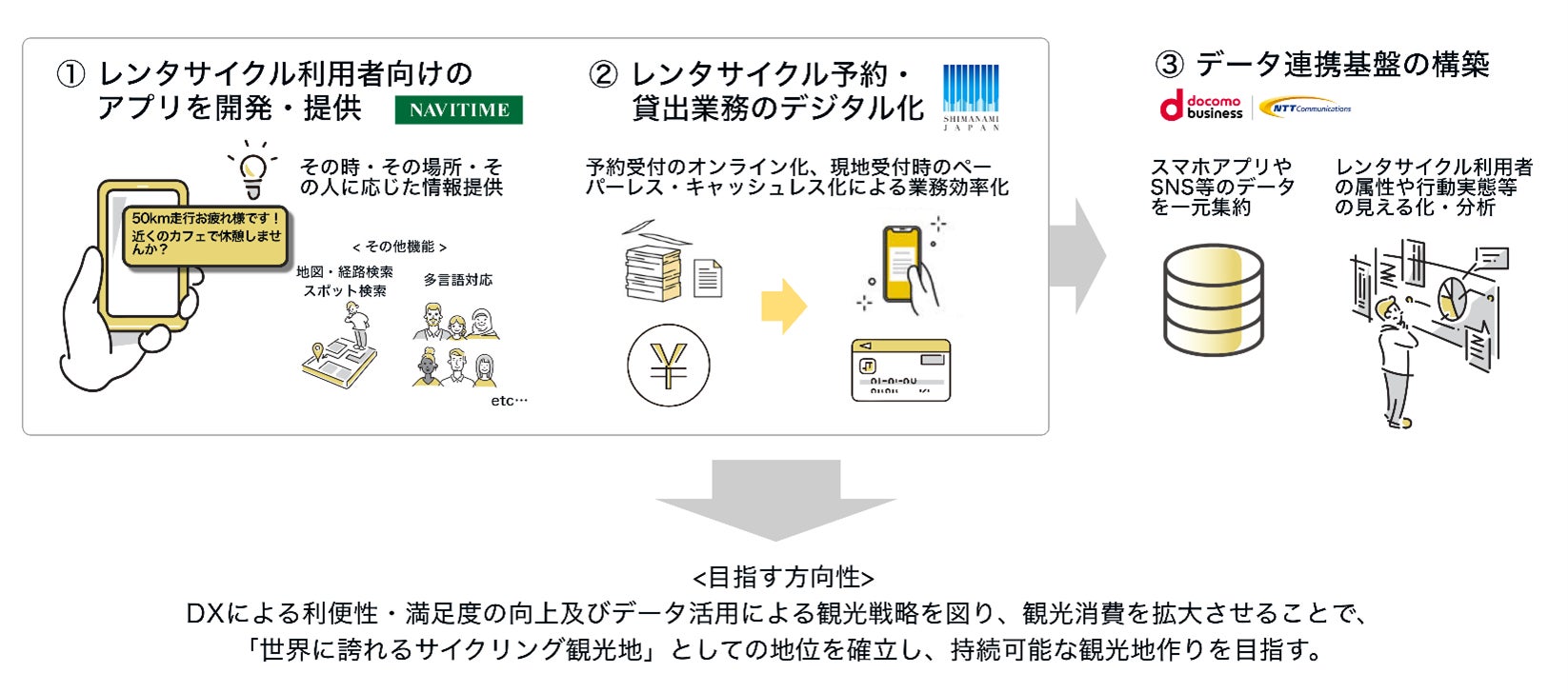 ※本実証は、観光庁 令和5年度「事業者間・地域間におけるデータ連携等を通じた観光地域経済活性化実証事業」の採択を受けた「レンタサイクルを基軸としたしまなみ海道活性化事業」の取組の一環として実施するものです。