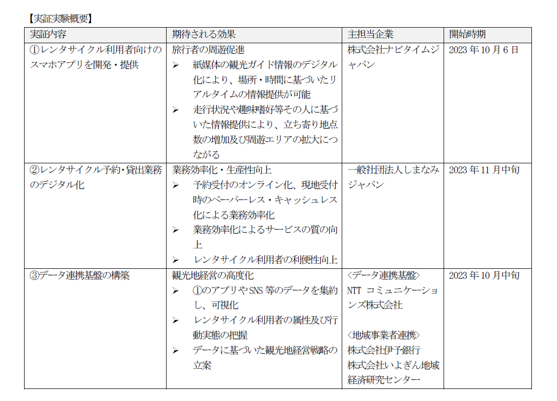※本実証は、観光庁 令和5年度「事業者間・地域間におけるデータ連携等を通じた観光地域経済活性化実証事業」の採択を受けた「レンタサイクルを基軸としたしまなみ海道活性化事業」の取組の一環として実施するものです。