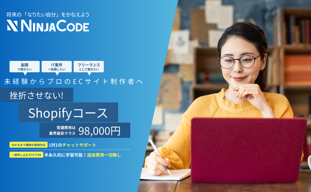 Shopifyコースは、未経験の方でもプロのECサイト制作者になる為に必要な本格スキルを身につけることができるコースです。