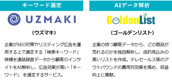 今回、当社展示ブースでは、このVoCを活用し企業の売上拡大や広告価値最大化を支援するサービスとして、一般消費者のインサイトを分析する新たなマーケティングサービス「UZMAKI」(今後リリース予定)及び金融業界や通販業界等で多くの導入実績があるデータ分析サービス「Golden List」をご紹介いたします。