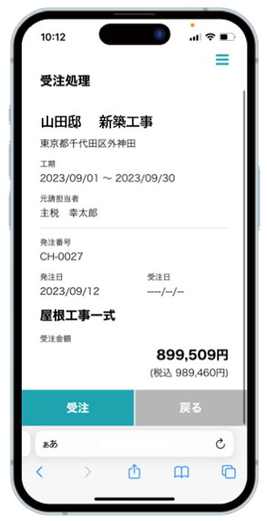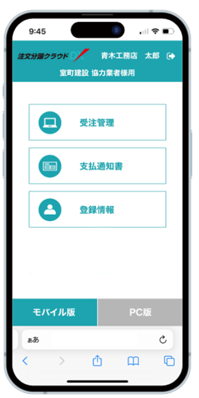 「注文分譲クラウドDX」 協力会社向けモバイル版画面イメージ