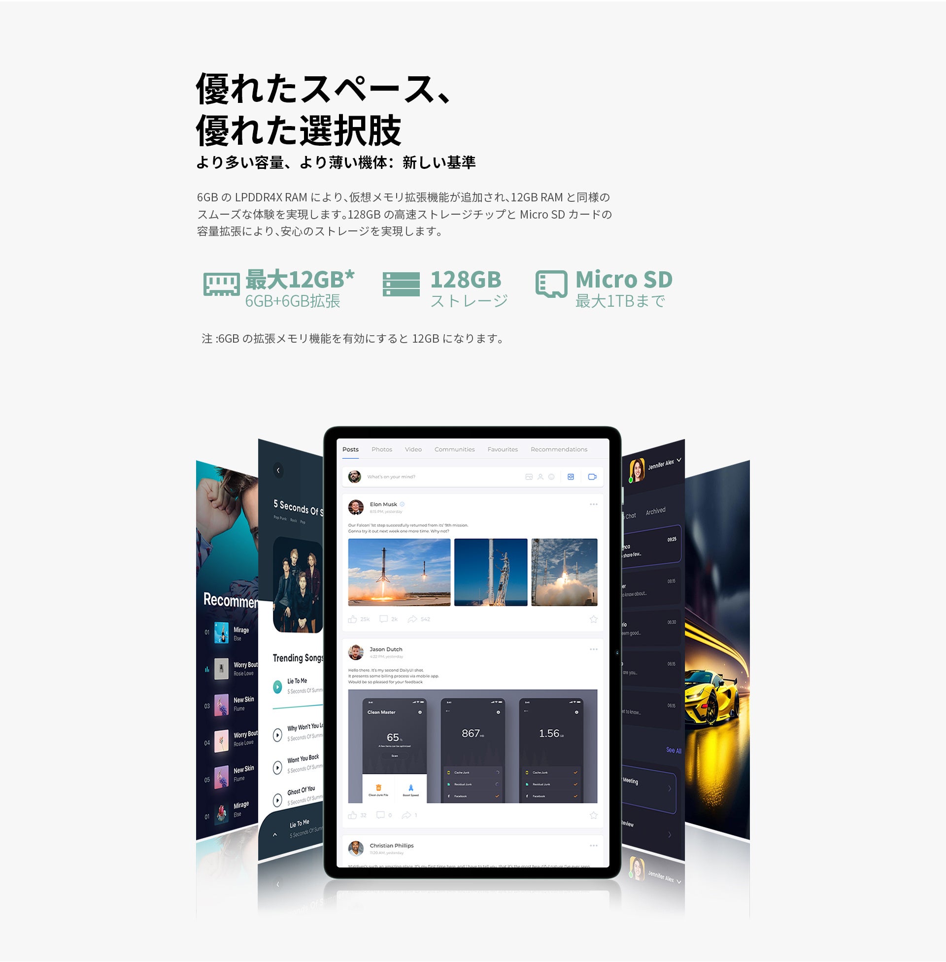 10インチ / Android 13 / 12GB+128GB+1TB TF拡張 / 4G LTE+5G WiFiモデル / Widevine L1対応 / GPS機能サポート / 3.5mmヘッドホンジャック