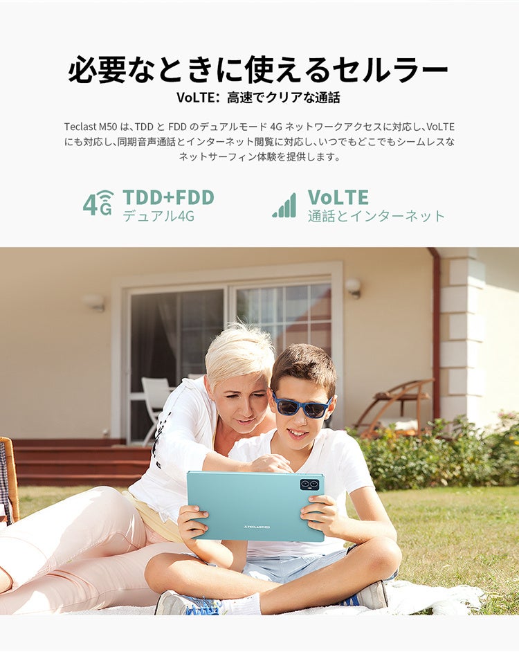 Teclast M50は、TDDとFDDのデュアルモード4Gネットワークアクセスに対応し、VoLTEにも対応し、同期音声通話とインターネット閲覧に対応し、いつでもどこでもシームレスなネットサーフィン体験を提供します。