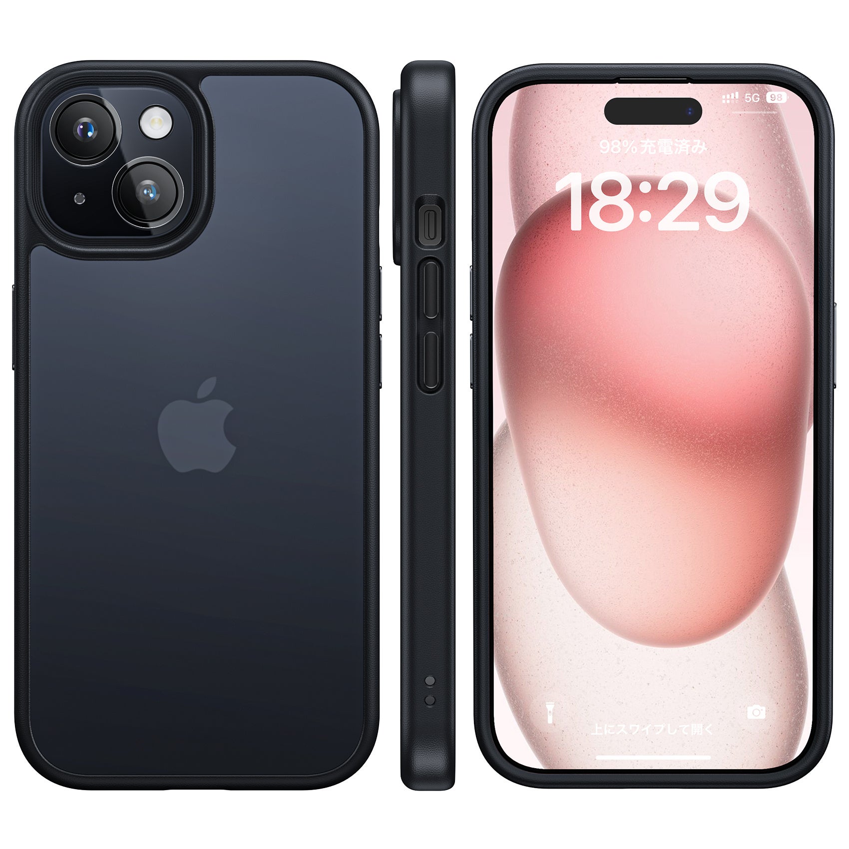 カバーの縁はアイフォン15の液晶画面より1.2mm高く、カメラレンズより0.8mm高い仕様です。併用の保護ガラスフィルムで平置きしても画面は接触しません。細部までの保護も配慮され、より一層な安心感を与えてくれます。
