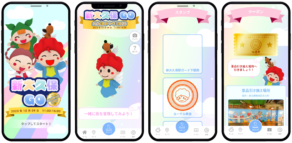 本アプリは、新大久保商店街振興組合の公式キャラクター「天使ちゃん」が登場し、街中でARを楽しみながら、商店街の散策ができます。デジタルスタンプラリーに参加して各スポットを周遊すると、おトクな電子クーポンが入手できます。電子クーポンは沿線の様々なショップで利用できるので、旅がますます楽しくなります。アプリを片手に、ぜひ新大久保商店街を散策してみてください。