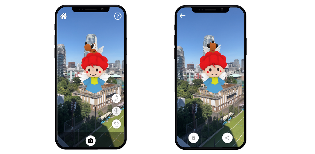 天使と一緒に写真を撮ったり、友達と写真を共有したりできます。