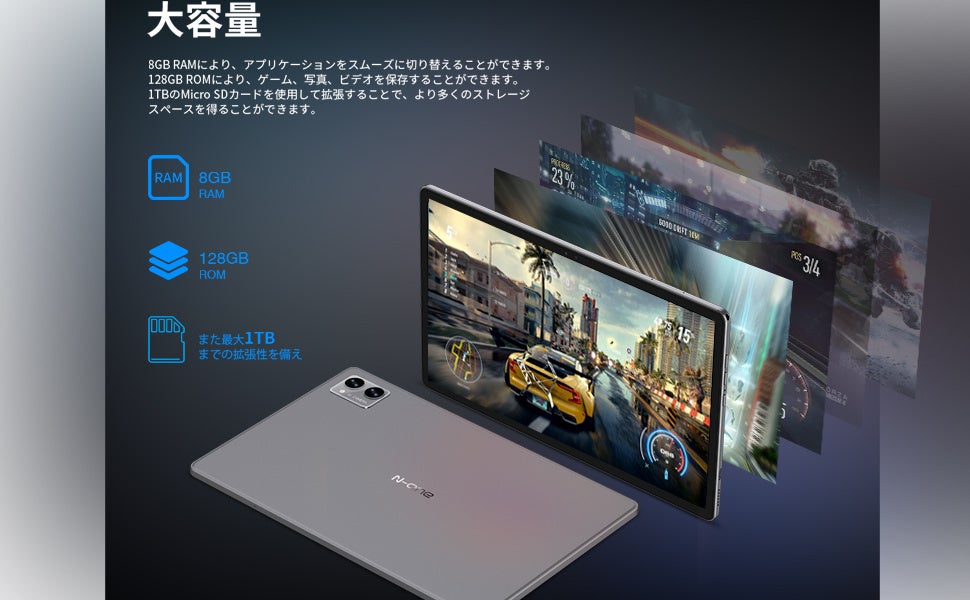 タブレット 10.4インチ wi-fiモデル Andorid 12 タブレット PC N-one NPad Plus MTK 8183 8コアCPU 2.0GHz 8GB+128GB+1TB拡張可能 10インチ 2K FHD IPSディスプレイ 2000×1200解像度 13MP/5MP + Bluetooth 5.0+GPS+2.4G/5G WiFi+OTG+6600mha+GMS 日本語取扱説明書付き