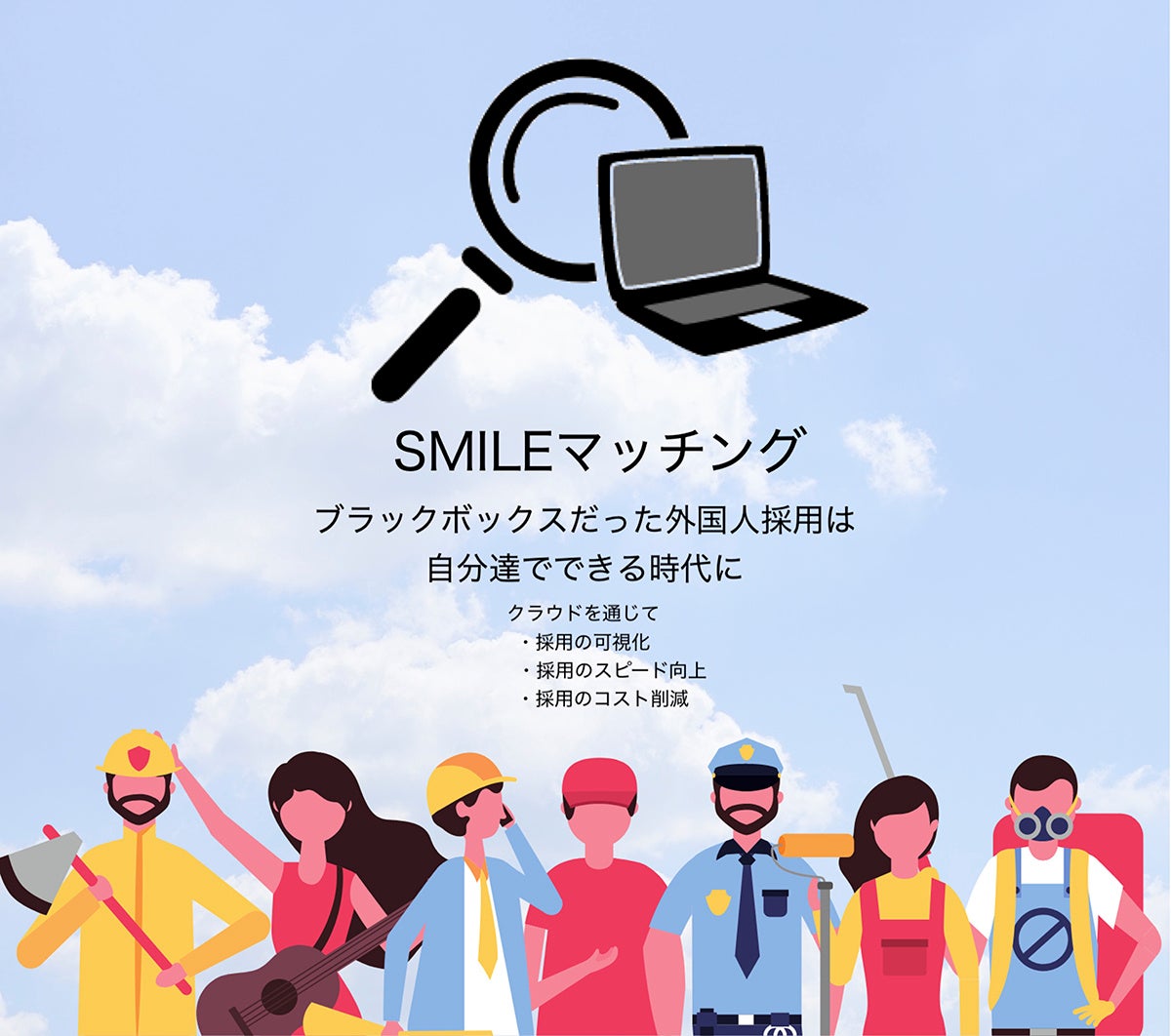 これまで、外国人採用は、採用ルートや方法がわからず、外部の業者に丸ごと依頼するため、その仕組みはブラックボックス化されてきました。しかし、SMILEマッチングでは、クラウドサービスを通じて外国人を採用したい企業と、日本企業で働きたい外国人労働者をダイレクトかつ、リアルタイムでマッチングを実現するサービスです。