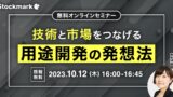【10月12日(木) 無料セミナー】『技術と市場をつなげる用途開発の発想法』を開催(ストックマーク主催)