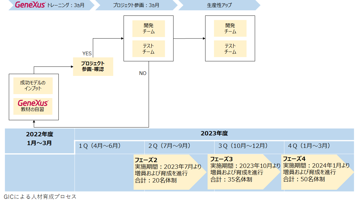 また、今後は単なる開発、保守だけでなく、上流工程から参画できる高度人材も育成し、ローコードツールGeneXusの資格取得によって、技術者のレベルを見える化していきます。