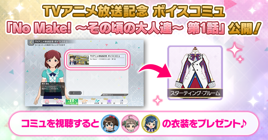 TVアニメ放送記念 ボイスコミュ「No Make! ~その頃の大人達~ 第1話」公開!