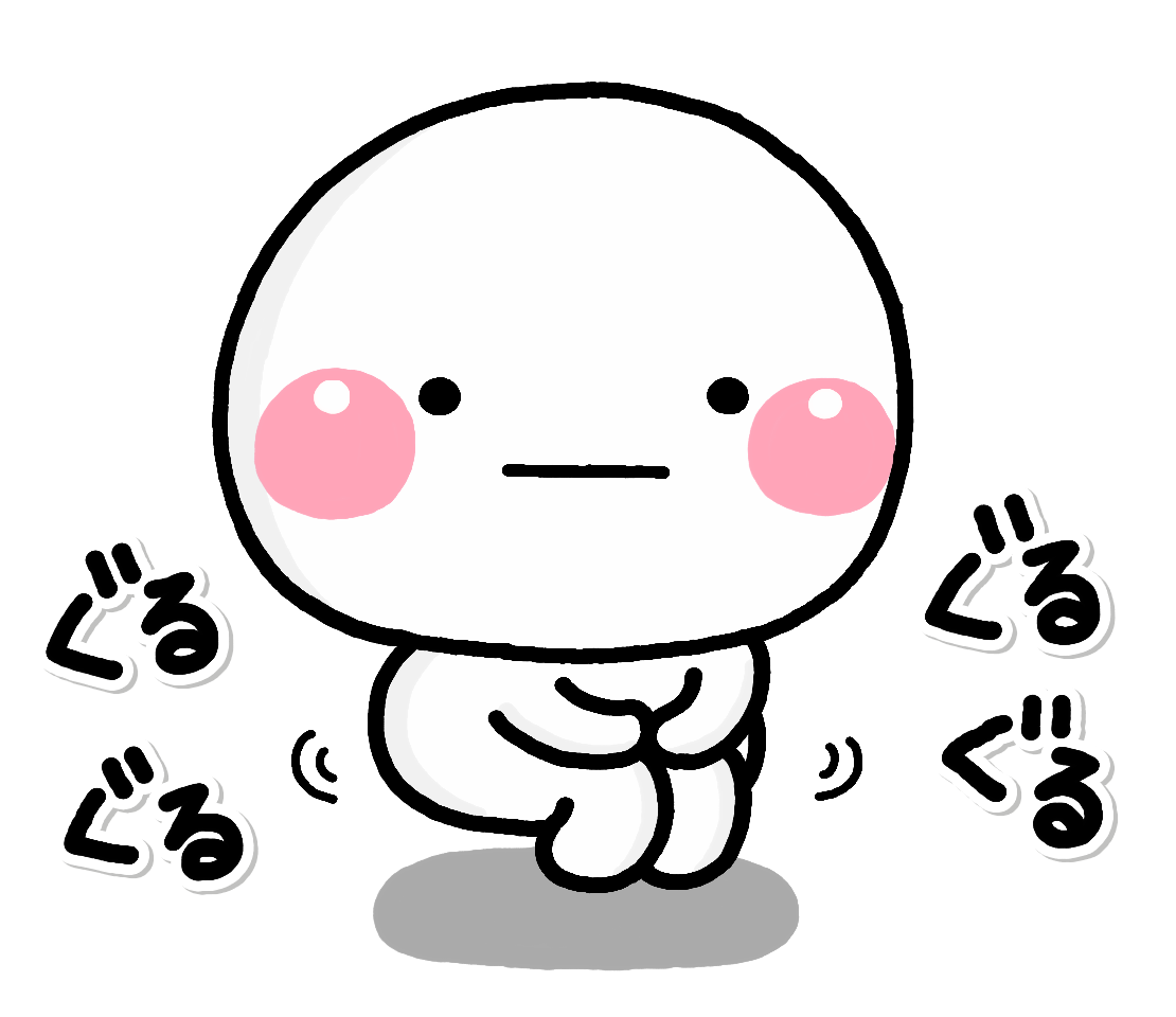 ぐるぐると膝を回すしろまるがシュールでかわいい、社員イチオシのスタンプです。