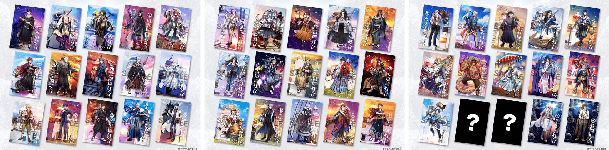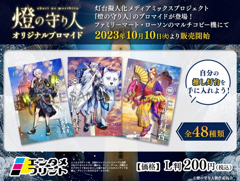 今回は、ワンダーウェーブが展開する全国各地の灯台を擬人化したメディアミックスプロジェクト『燈の守り人』の誕生2周年を記念して、守り人たちの美麗イラストを使用したオリジナルブロマイドを販売します。ラインナップは、これまでに発表されてきたキャラクター46体に、未発表のキャラクター2体を加えた全48種類です。