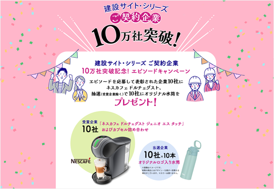 ・名称:建設サイト・シリーズご契約企業10万社突破記念!エピソードキャンペーン