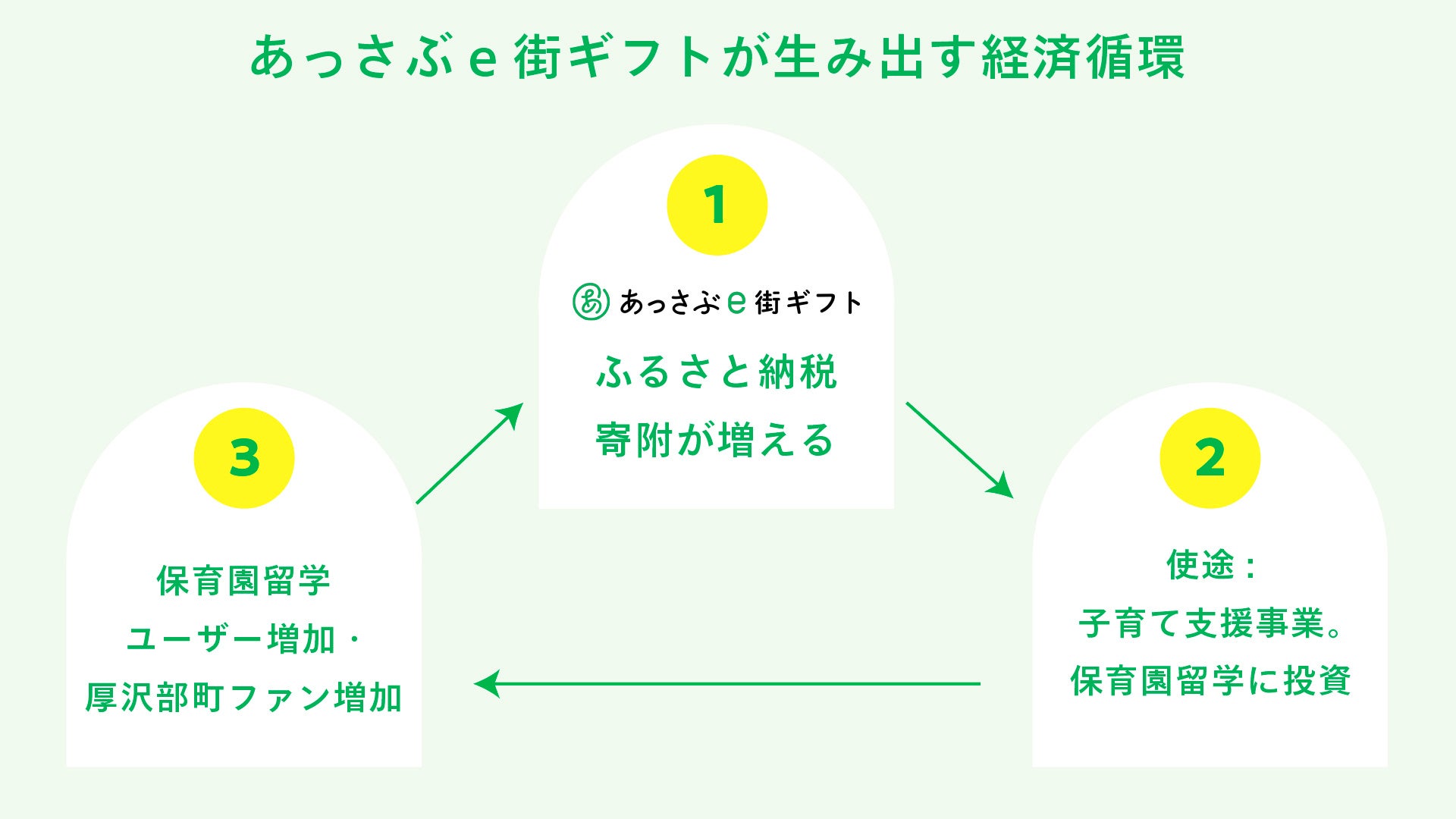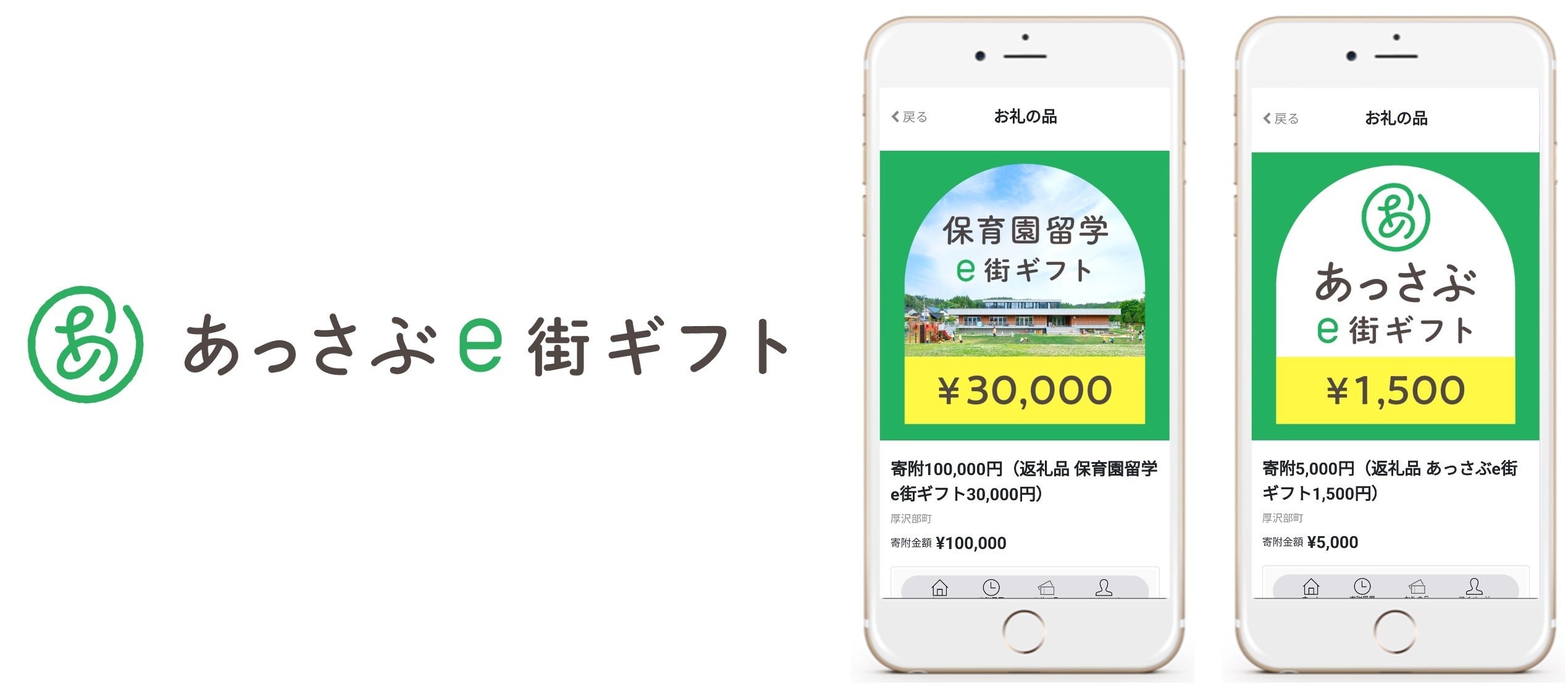 - 2021年11月に保育園留学の事業をスタートしてから、多くのご家族が厚沢部町へ留学にきてくれるようになりました。大変嬉しい限りです。また、その受け入れを支えてくださっているのは、こども園や、移住体験推進事業者、飲食店、地域おこし協力隊など、まちの皆様に他なりません。あっさぶe街ギフトは、まちの事業者への支援にもなります。「あっさぶe街ギフト」という名前には、来てくれる皆様への感謝、町で迎え入れてくれている皆様への感謝として「贈り物」の意を込めてます。集まった寄附は「保育園留学の推進」および「子育て支援のための事業推進」へ活用することを約束します。ぜひ、厚沢部町を楽しみながら、この町の未来を一緒につくっていただけると嬉しいです。
