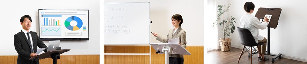 (写真:会議やプレゼンでの使用 / 塾などの講義使用 / ご自宅でのテレワークやデッサンでの使用 )