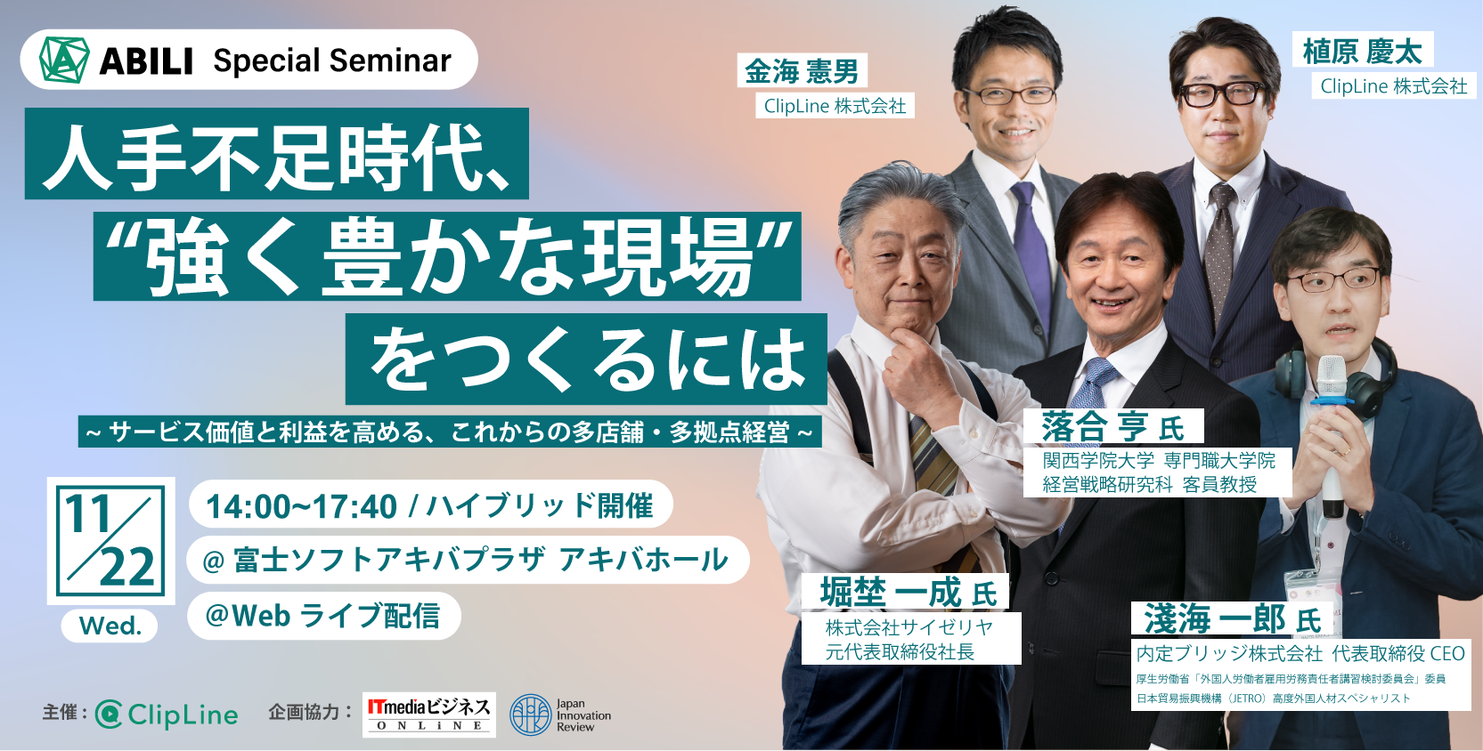 「人手不足」という大きな社会課題を前に、さまざまな視点で成長に繋がる”真の改革”を考えていくセミナーです。