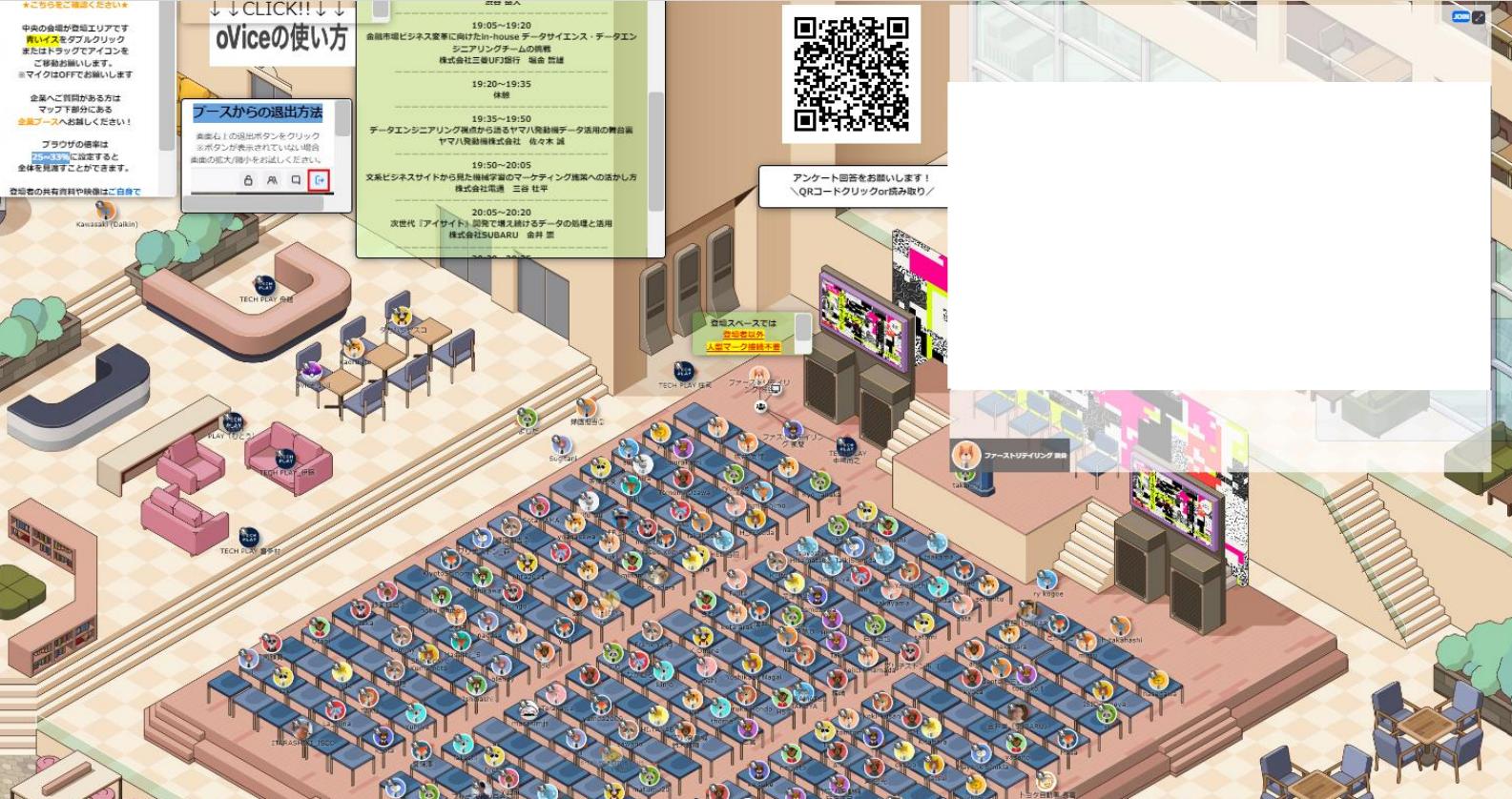 当日は、トヨタ自動車、ファーストリテイリング、三菱UFJ銀行、電通、SUBARU、ヤマハ発動機、ブリヂストン、ダイキンの8社に登壇いただき、定員である200名がバーチャル空間「oVice」を活用しました。オンライン開催でもイベント参加者同士のインタラクティブな交流が実現しました。