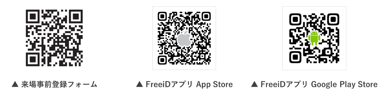 来場に際して事前登録頂くとスムーズに、ご入場頂けますので是非ご登録ください。また、事前にFreeiDアプリをダウンロードし、会員登録して頂くとスムーズに顔認証もご体験頂けます。