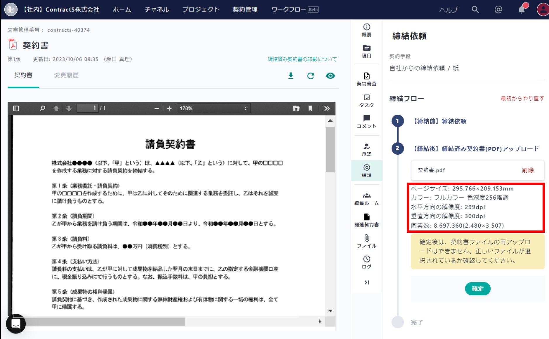 ContractS CLMでは、適切にご利用いただくことで紙、電子データ両方で電子帳簿保存法に対応した「訂正削除が物理的にできないシステム」として機能します。