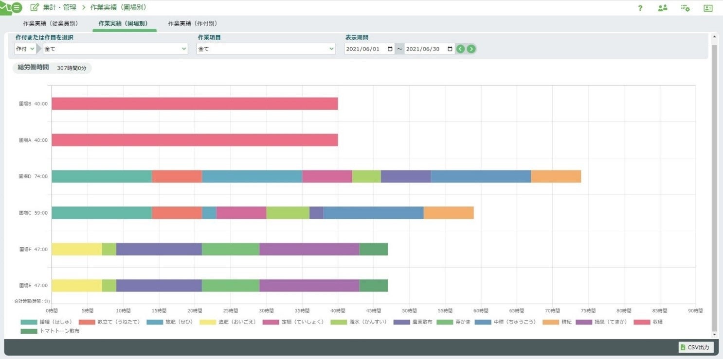 圃場横断的に従業員の作業項目ごとの作業実績を読み取ることで、従業員個別に得意な作業の把握が可能です。該当作業を得意とする従業員にノウハウを共有してもらう事や作業手順を指導してもうことに役立ちます。