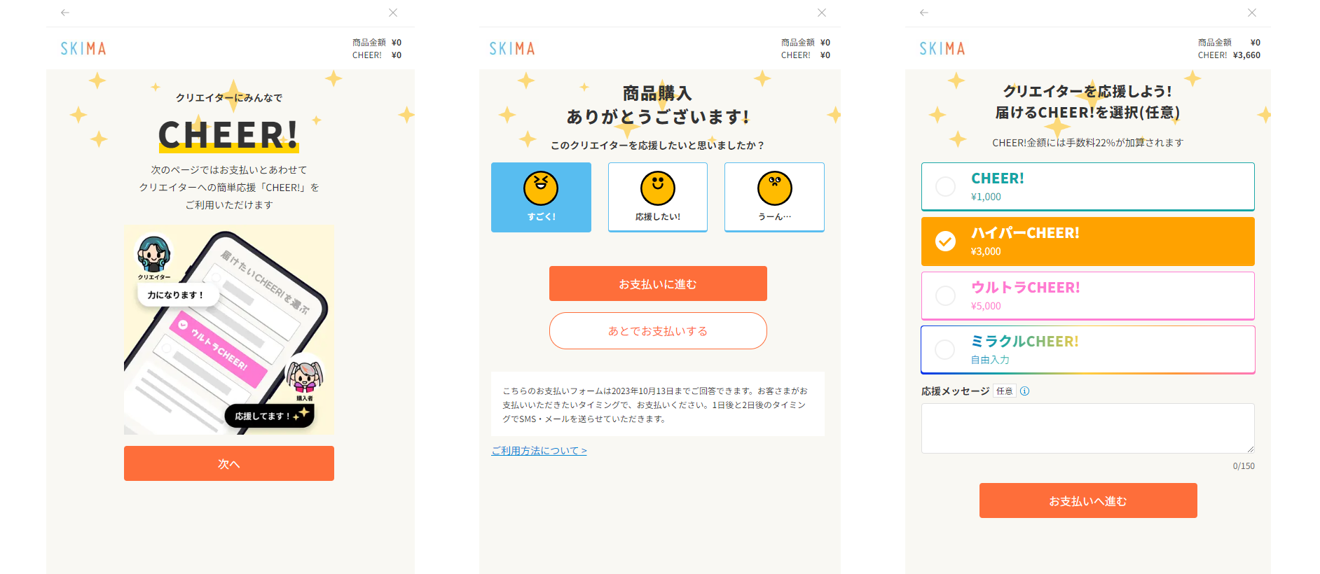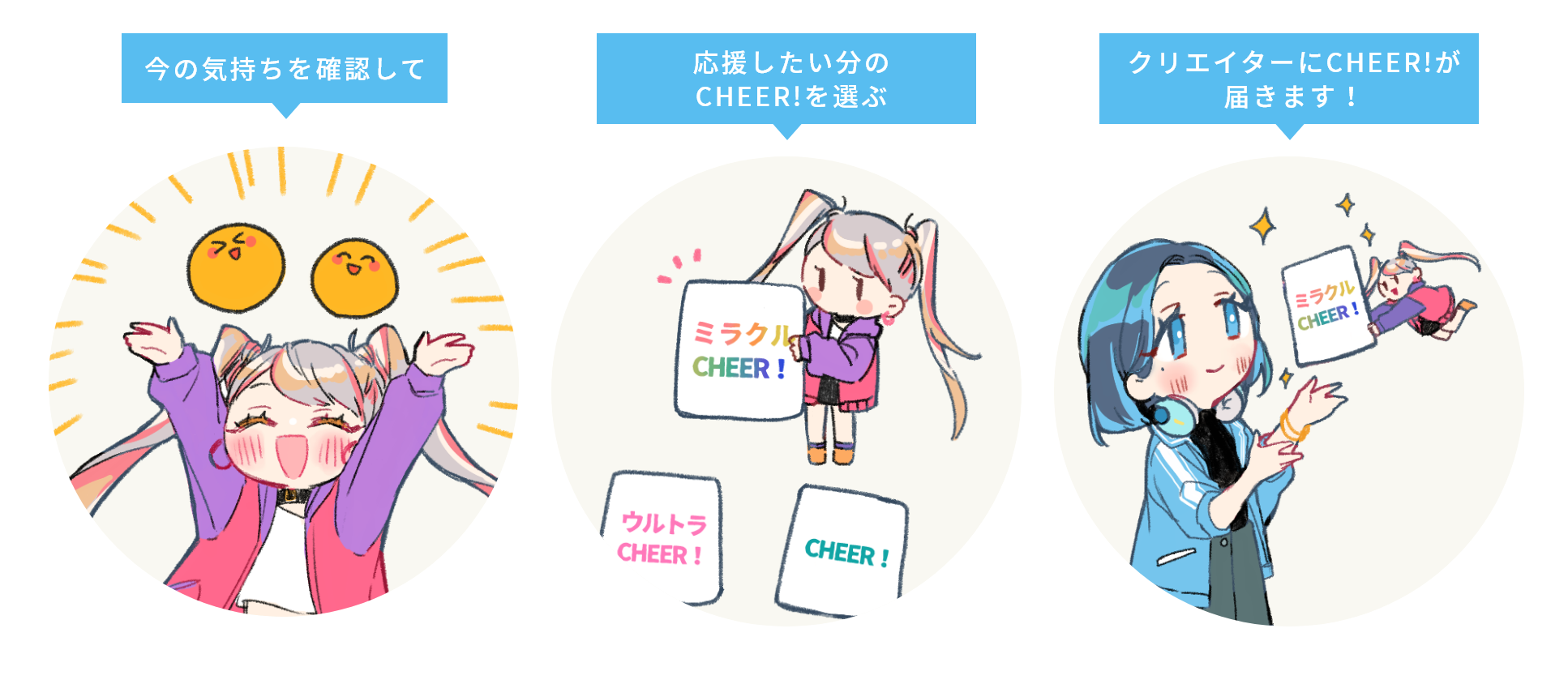 「素晴らしい制作体験には感謝と応援を」をコンセプトとしており、従来と比較して手軽に楽しく感謝と応援を表現できます。従来のチップでは金額のみがクリエイターに届く仕組みでしたが、新機能では、選択型のCHEER!と合わせてクリエイターへ向けた感謝の言葉を伝えることも可能になりました。