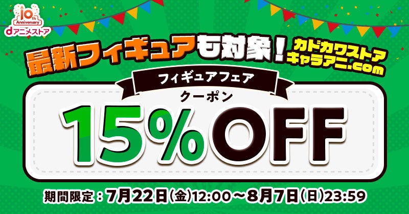 ▼【dアニメストア10周年記念!】カドカワストア&キャラアニ.com限定 フィギュア15%OFFクーポン