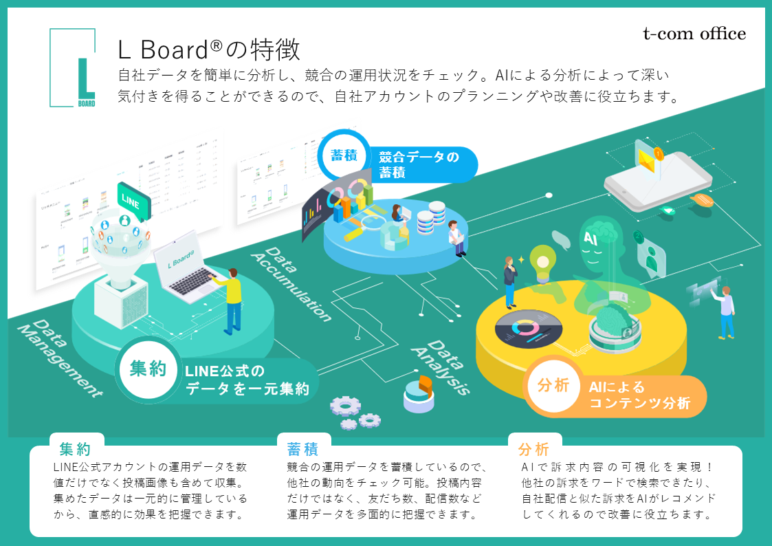 ■自社データの一元管理: L Board®は、運用データを一元管理することで、企業が効果をリアルタイムで把握できるようになります。