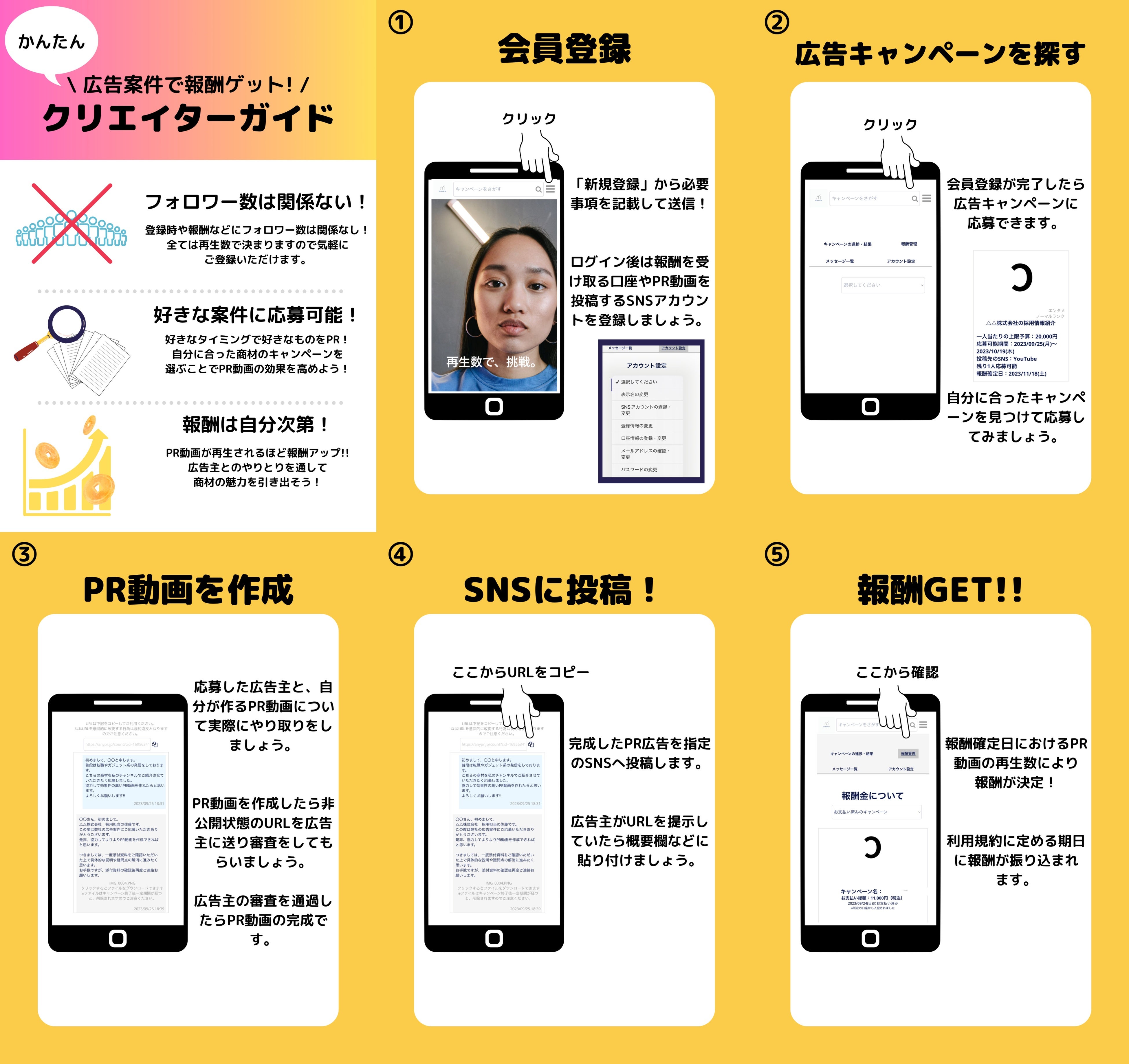 Anyprでは、クリエイターがサービスに登録し、企業様の依頼に応募する際、フォロワー数による制限は設けておりません。