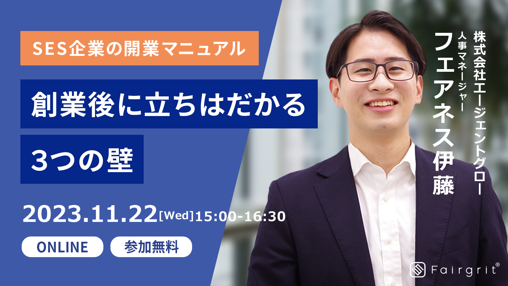 株式会社エージェントグロー(本社:東京都港区、代表取締役:河井智也/以下、「当社」)が毎月開催しているSES企業様を対象にした無料オンラインウェビナーにつきまして、2023年11月度の開催内容と日程が決定いたしました。