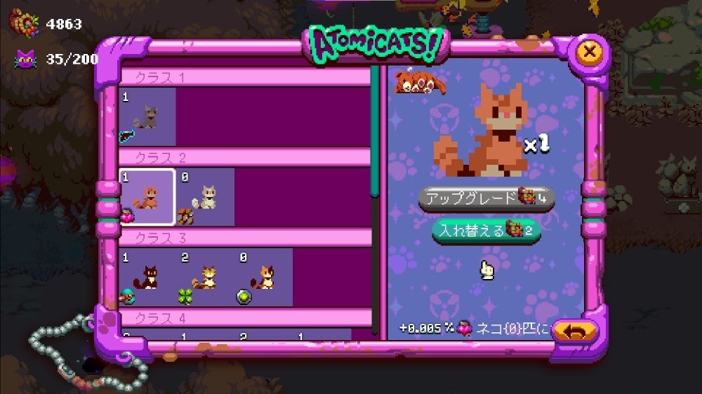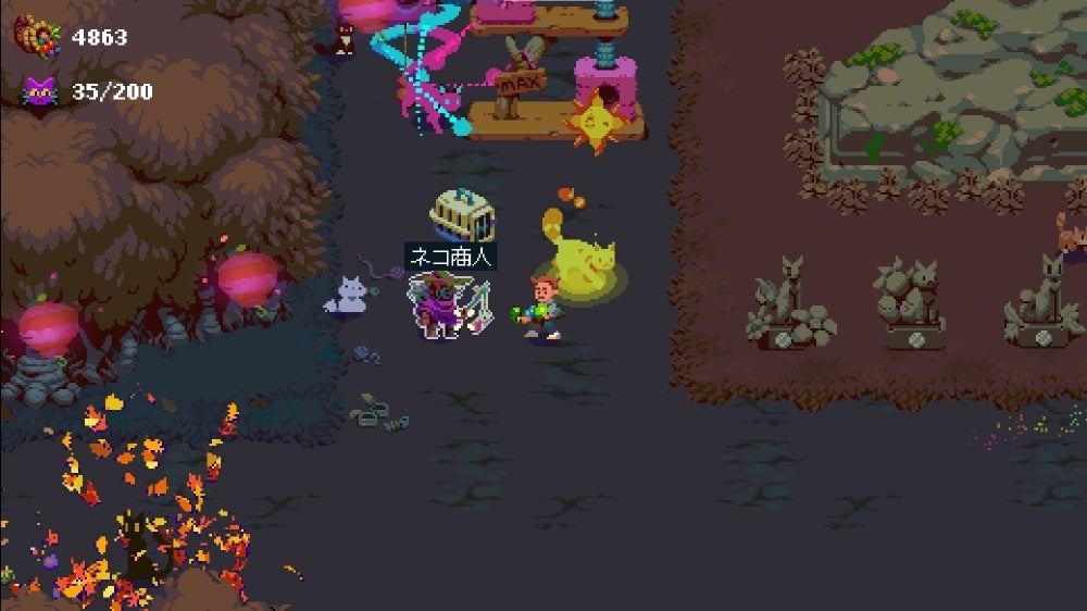 ▼さらに「ネコ商人」に話しかけて、集めたネコの種類を確認したり、入れ替えたりして好みのステータスを向上させましょう!