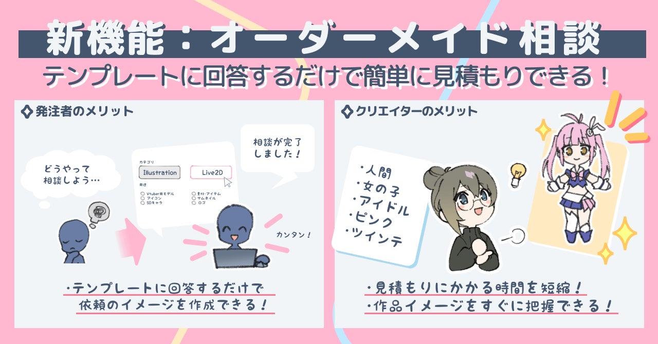 初心者にとってはハードルが高いクリエイターへの制作相談。今回の「オーダーメイド相談」を使えば、テンプレートに回答するだけでクリエイターへ気軽に相談をお願いできます。
