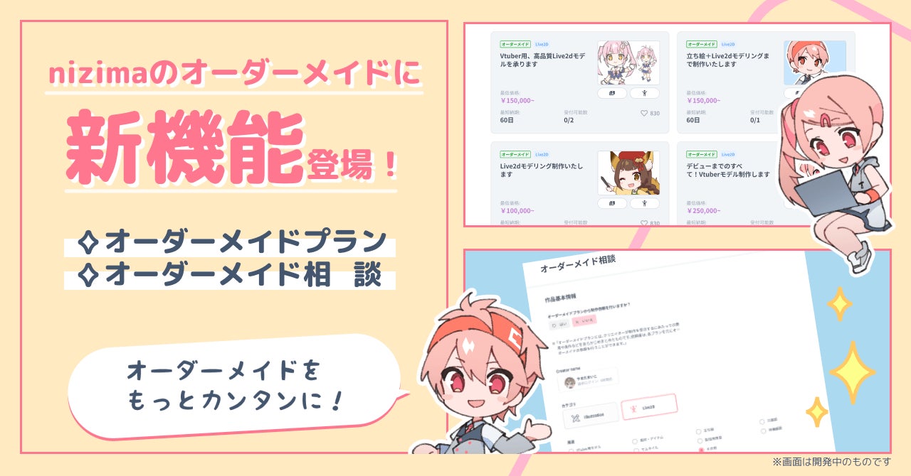 Live2D公式マーケットnizimaに新機能「オーダーメイドプラン」「オーダーメイド相談」が新登場!